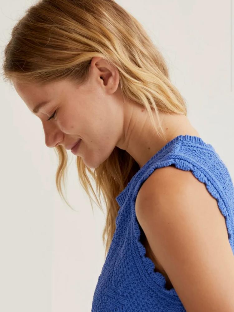 Compania Fantastica Delphinium Top. This textured knit top from Compania Fantastica is made in this uplifting Delphinium colour – a lightweight sleeveless knit, that has plenty of stretch, making it easy and comfortable to wear. Wear it layered up or on it’s own for all your spring and summer looks!